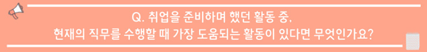 조금 특수한 경험이지만, 저는 군대에서 언론홍보 관련 업무를 했었습니다. ‘공보장교*’라는 장교로 일을 하며, 보도자료 작성과 기자분들과의 소통 등, 지금과 비슷한 업무를 했었습니다. 이러한 업무를 통해 언론 담당 커뮤니케이션을 많이 했던 것이 현재의 홍보직무를 수행하는 데에 가장 큰 영향과 도움을 주었다고 생각합니다.