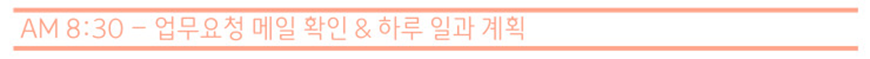 8시 30분에는 부서관련 업무 요청 메일들을 확인하고, 오늘 하루를 어떻게 보낼 것인지에 대해 생각하여 그날 하루 일과를 계획합니다.