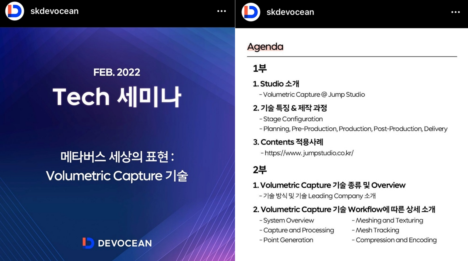 2월 24일에 DEVOCEAN에서 Volumetric capture라고 하는 메타버스 속 가상 공간을 구현하는 기술에 대해서 세미나를 했거든요.