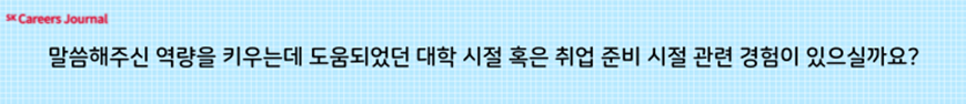 예전에 국민연금공단 지사에서 청년인턴을 했던 적이 있는데요. 매번 처음 보는 분들이지만 스스럼없이 다가가고 이야기하고 하면서 Communication 역량을 키울 수 있었던 것 같습니다. 이를 바탕으로 사내 구성원분들에게도 편안하고 유쾌한 후배/동료/선배가 되면서 사내 네트워킹도 잘 다질 수 있었던 것 같습니다.