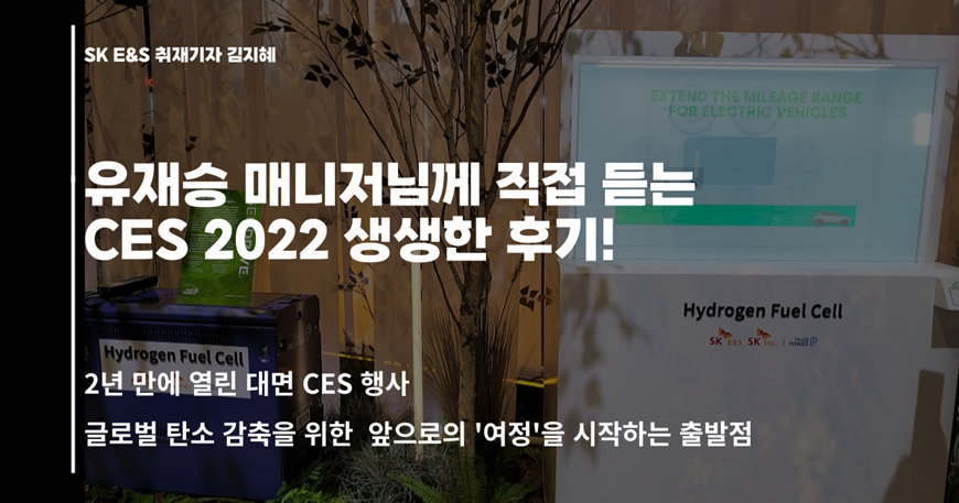 안녕하세요, SK E&S 취재기자 김지혜입니다. 오늘은 특별한 분께 CES 2022 후기를 들어보려고 하는데요! CES 2022, 들어보셨나요? CES는 미국에서 열리는 세계 최대 규모의 전자제품 박람회인데요. 이번 CES 2022에 SK E&S가 처음으로 참여했다고 합니다. 생생한 후기 들어보러 가실까요~? 😉