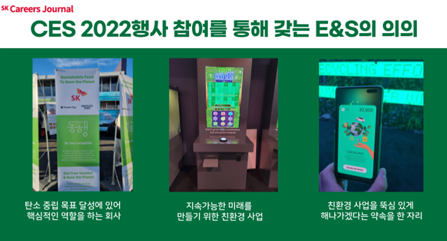 CES 2022에 직접 다녀오신 유재승 매니저님께 들은 박람회 후기! 저도 기회가 된다면 내년 CES에 다녀오고 싶네요😁 후기를 통해 SK E&S의 탄소 저감 사업에 대한 구체적인 내용을 알 수 있는 유익한 시간이었습니다! 앞으로도 SK E&S의 행보를 기대하며 기사 마무리하겠습니다. 감사합니다:)