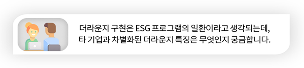 또한 환경보호를 위해 The Lounge 내에서는 일회용품, 일인용 음료 등을 제공하고 있지 않습니다. 이제는 회사 내에서 개인 컵을 가지고 다니는 게 익숙한 문화가 되었어요. 이 또한 The Lounge가 만들어낸 자랑스러운 SKT 2.0 문화가 아닐까 싶네요.