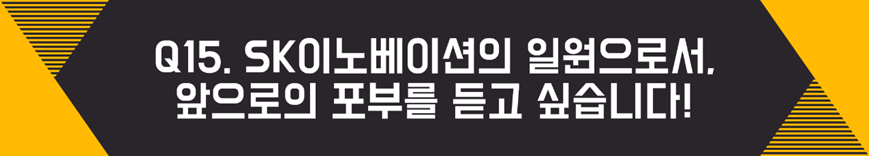 제가 옛날부터 생각 했었던, ‘내가 죽기 전에 세상에 하나쯤은 도움이 되는 일을 하자’라는 것을 이룰 수 있는 발판이 이제는 조금 마련이 된 것 같다는 생각이 듭니다. 그래서 SK에서 구성원들과 함께 더 나은 세상을 만들 수 있는 연구개발을 수행해서 작게는 SK에, 크게는 이 세상에 도움이 될 수 있는 사람이 되기 위해 노력하겠습니다!