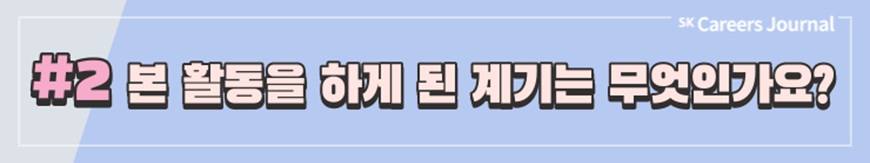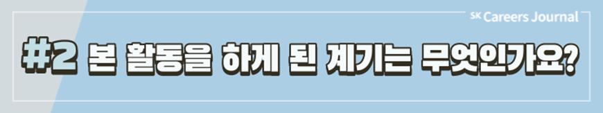 대학 수업이 온라인으로 진행되는 ‘비대면 라이프’가 지속됨에 따라 대학생들은 이 시기를 틈타 스펙UP을 위해 여러 활동을 하고 있습니다. 그 중 대표적인 것이 바로 ‘대외활동’이라고 할 수 있겠습니다. SK에서도 대학생들에게 여러 경험을 할 수 있도록 다양한 대외활동을 운영하고 있답니다. 그래서 오늘은 SK에서 주관한 각기 다른 대외활동을 해본 대학생들을 모셔 그 활동에 대해 소개하는 자리를 만들어 보았습니다.