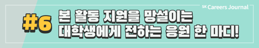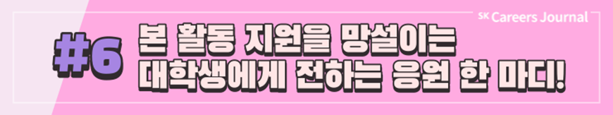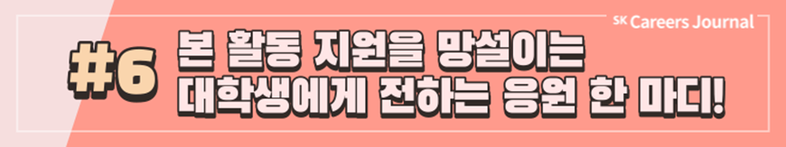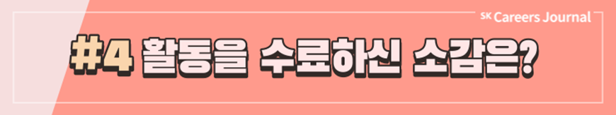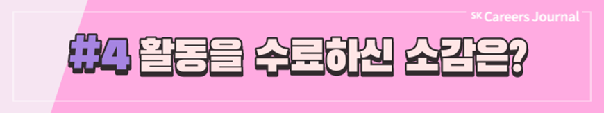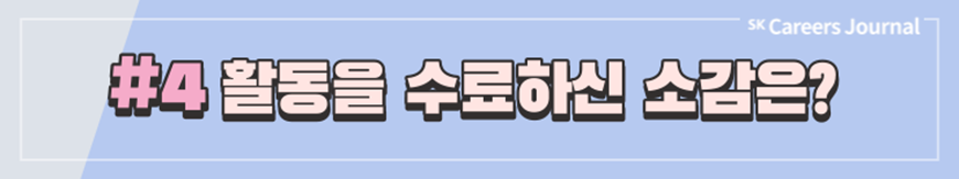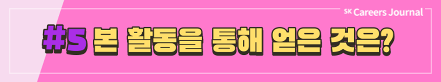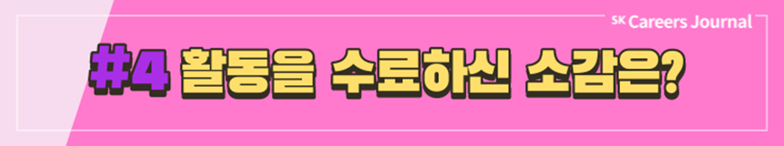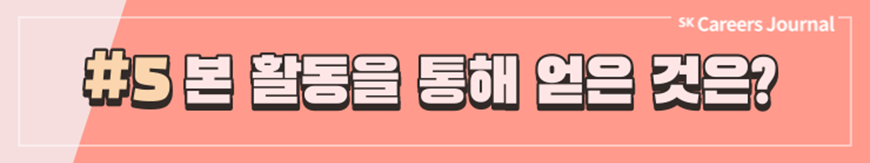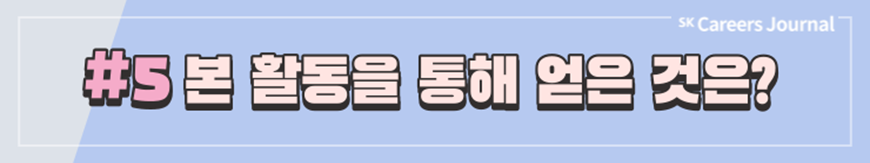 지금까지 SK에서 주관하는 다양한 대외활동, 그리고 실제 활동자들이 전하는 생생한 후기를 잘 알게 되셨나요? 대외활동은 이전부터 대학생의 대학 생활 중 일부분으로 자리잡아 왔지만 코로나 이후 비대면 일상이 진행되며 차지하는 비중이 점차 커져 온 것 같습니다. 여러분도 이 시기를 활용하여 SK에서 주관하는 여러 대외활동에 도전하고 또 새로운 경험을 해 나가는 것은 어떠신가요? SK의 대외활동을 하며 성공적인 대학 생활, 그리고 성공적인 취준까지 이어지기를 응원합니다. ✿우리, 꽃길만 걷자구요!✿