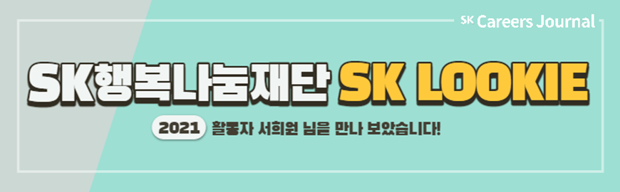 이번에 소개할 활동은 SK LOOKIE입니다. LOOKIE는 LOOK+ROOKIE의 합성어로 사회와 환경을 새로운 시각을 바라본다는 의미를 가지고 있답니다. LOOKIE 활동은 동아리 활동을 통해 사회 문제를 해결할 비즈니스 모델을 만들고 사회를 긍정적으로 혁신하는 인재를 육성하게 됩니다. SK LOOKIE 활동 소개를 위해 2021년도에 본 활동을 하신 서희원 님을 모셔 보았습니다.