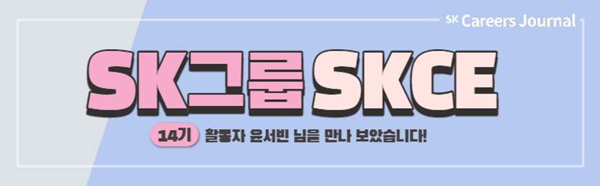 SK Careers Editor(SKCE) 활동은 SK그룹에서 주관하는 활동으로 SK그룹의 채용 소식 및 주요 관계사의 이야기를 전하는 활동을 하게 됩니다. SK의 관계사마다 취재 기자가 있고 그 중 SK C&C, SK이노베이션, SK텔레콤, SK하이닉스, SK브로드밴드 관계사의 경우 영상 크리에이터까지 있답니다. 총 18명의 SKCE가 한 기수가 되어 개인, 팀 미션을 수행하게 됩니다. SKCE 활동 소개를 위해, 14기 활동을 하신 윤서빈 님을 모셔 보았습니다!
