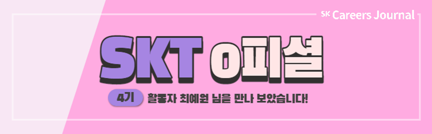 SKT 0피셜 활동은 SK텔레콤에서 주관하는 활동으로 SK텔레콤 이슈에 대한 아이디어 전략을 제안하고 발표하는 활동이 주 활동 내용이랍니다. 특이점은 3인 1팀으로 총 10개 팀을 모집한다는 점으로 지원 준비를 하며 마음이 맞는 팀원들을 모으는 것도 활동의 합격과 이후 활동 지속에 있어 매우 중요한 단계가 됩니다. SKT 0피셜 활동 소개를 위해, 4기 활동을 하신 최예원 님을 모셔 보았습니다!