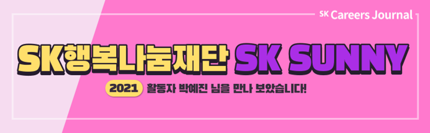 이번에 소개하는 활동은 역사가 깊은! 대외활동을 하는 사람들이라면 모두 알! 그 유명한 SK SUNNY입니다. ‘대학생 자원봉사단’이라는 또 다른 명칭을 가지고 있기도 하죠. SUNNY는 사회문제 개선을 위해 직접적인 사회참여를 하고, 이를 통해 우리사회의 긍정적인 사회변화를 리드하고 있답니다. SK SUNNY 활동 소개를 위해 2021년 상반기, 하반기 프로그램을 모두 참여하신 박예진 님을 모셔 보았습니다!