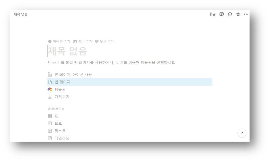 이 때 엔터(Enter)키를 누르면, 빈 화면이 나타납니다. 이제 필요에 맞는 기능을 사용하면 됩니다!
