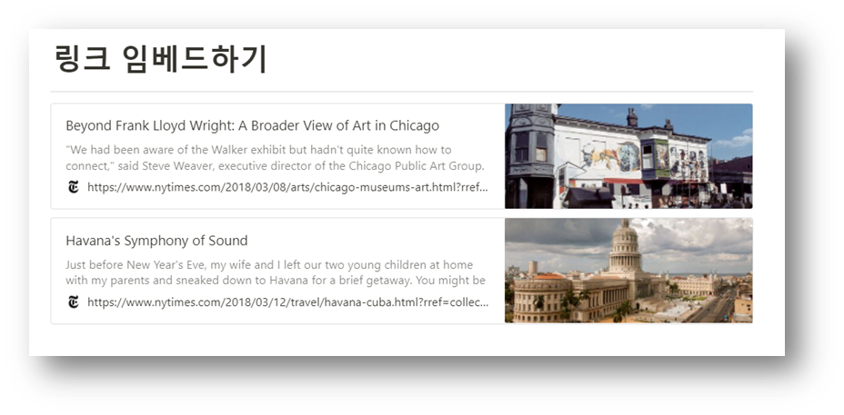다음으로는 경력 및 세부사항을 넣어야겠죠? 이 때는 위 이미지와 같이 하위페이지를 넣어 만들어도 되고, ‘임베드’ 기능을 사용해도 됩니다! ‘임베드’ 기능에서는 “거의 모든” 온라인 콘텐츠를 삽입할 수 있습니다. (노션 피셜!) 링크부터, 파일, 이미지, 영상, pdf 등 모두 가능하죠! 이 기능은 역시 ‘/’를 입력한 뒤, ‘임베드’를 선택해 링크를 삽입하면 됩니다. 노션의 ‘빠른 메모’ 페이지를 예시로 보여드릴게요!