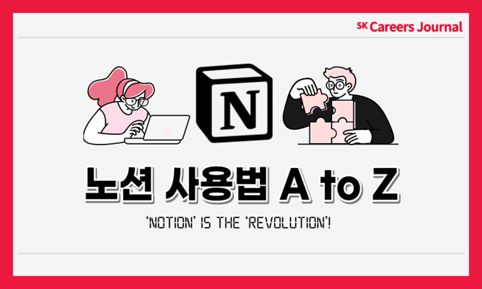 기록은 나날이 중요해지고 있습니다. 다른 사람들에게 꼭 보여주려는 목적이 아니더라도 개인의 아카이빙 용도로도 정말 중요하죠. 지금처럼 오프라인에서 온라인으로 많은 것이 전환되고 있는 이 시점에는, 기록 역시도 온라인으로 바뀌는 추세입니다. 인스타그램, 블로그, 유튜브, 노션 등 다양한 플랫폼을 통해 다이어리부터, 일정관리까지 모두 온라인으로 하고 있죠. 이 중에서도 노션은 깔끔하고 세련된 UI로 2030의 마음을 사로잡았다고~ 그런데, 막상 사용하려니 어렵게 느껴지는 사용법 때문에 포기한 사람들도 있다고요~? 그렇다면 SKCE가 알려드립니다! 노션 사용법 A to Z, 제 1탄! 개인편/초급편 시작합니다!