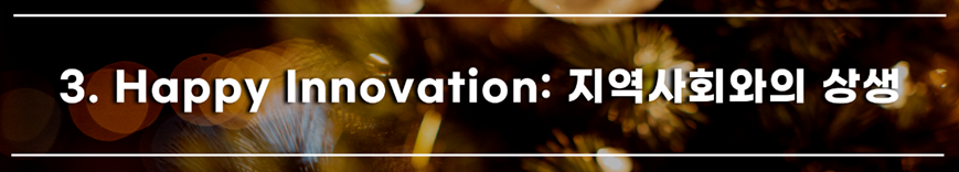 지금부터는 3가지 중점 전략에 맞는 각각의 사회공헌 활동 사례를 통해 ‘Happinnovation’의 추진 체계에 대한 이해를 높여보는 시간을 갖겠습니다! 모두 집중해서 잘 따라와주세요~~