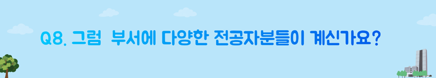 이게 굉장히 큰 장점이죠. 여러 전공자분들과 논의를 할 때 보는 관점들이 다 다르니 배울 수 있는 점이 굉장히 많죠. 아까도 말씀드렸듯이 이게 저희 부서의 가장 큰 매력인 것 같아요.