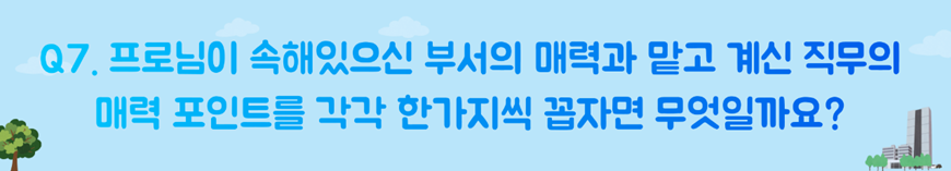 직무쪽으로 말씀드리자면 새로움이라고 말씀드릴 수 있을 것 같아요.
