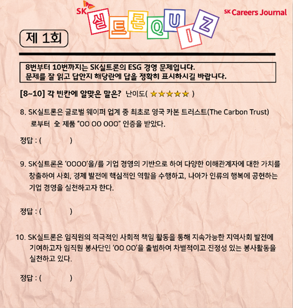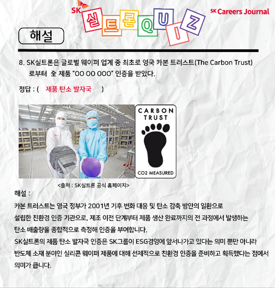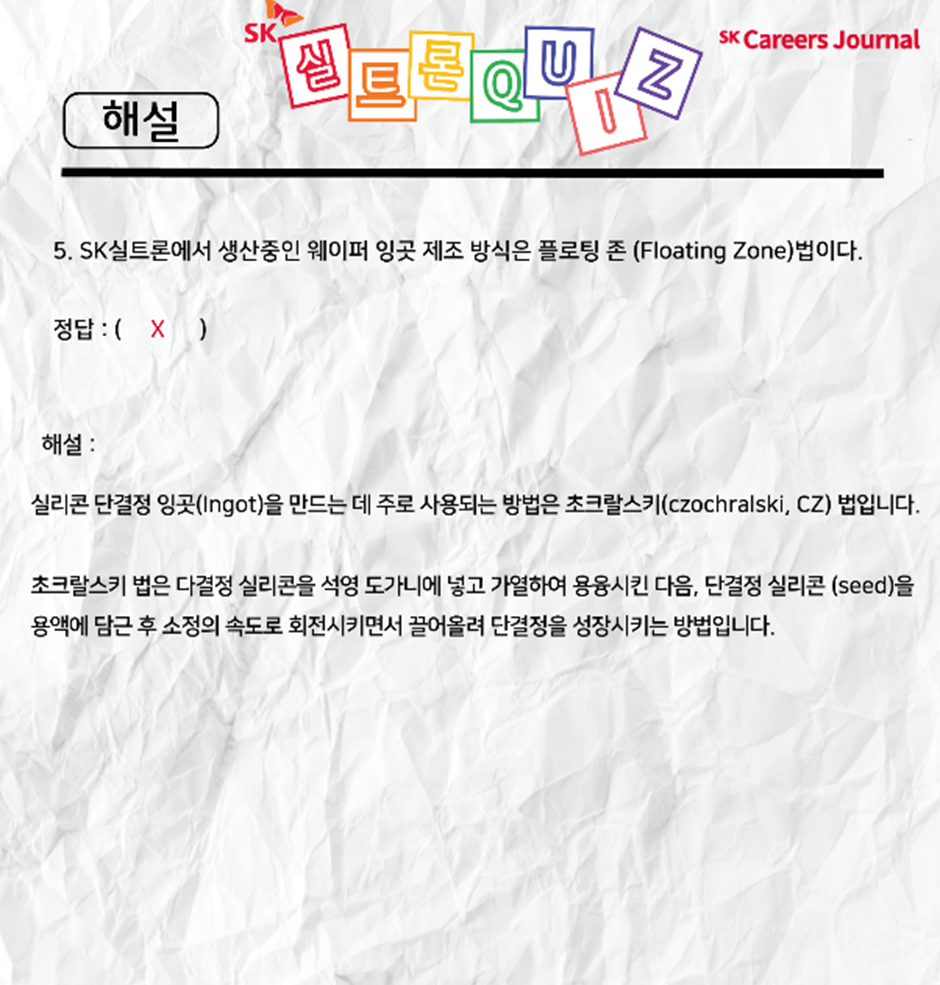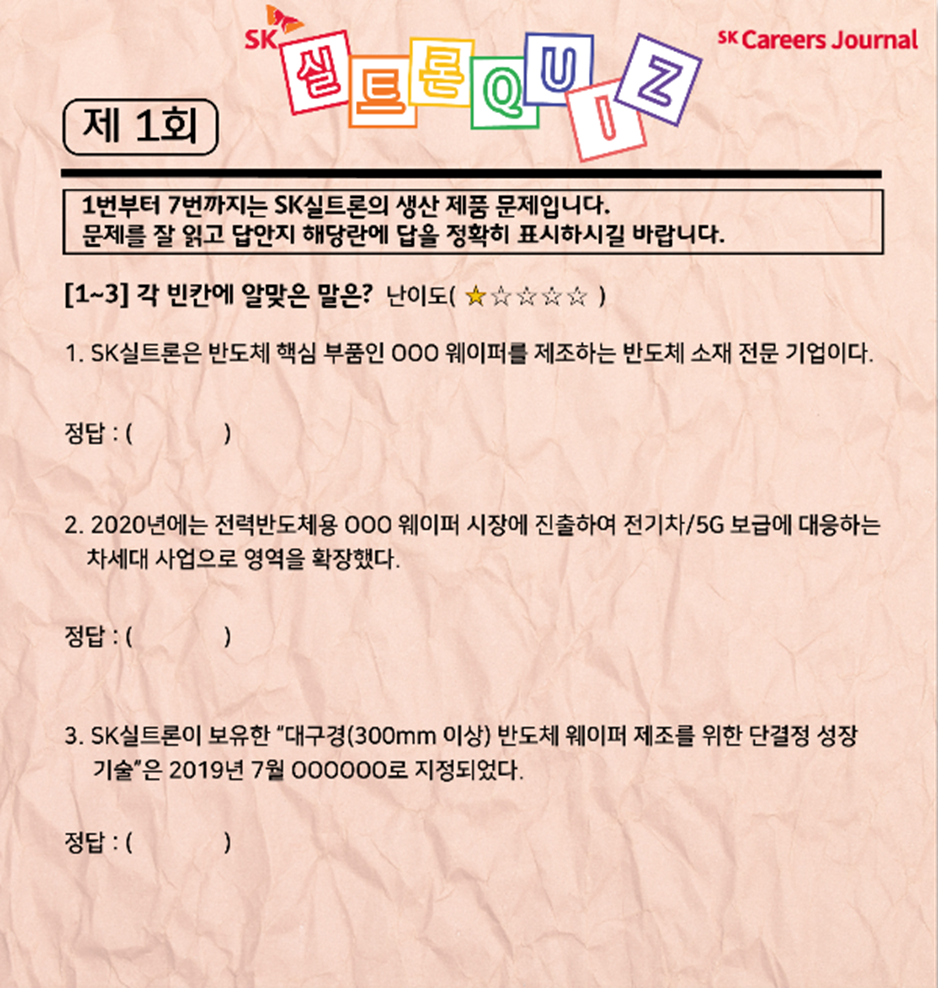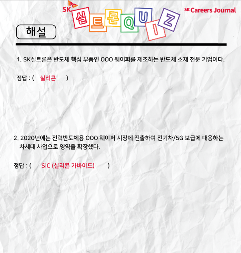 각 문제에 대한 해설과 함께, SK실트론을 차근차근 알아가는 시간을 가져볼게요 :)
