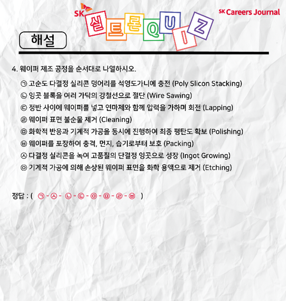 각 문제에 대한 해설과 함께, SK실트론을 차근차근 알아가는 시간을 가져볼게요 :)