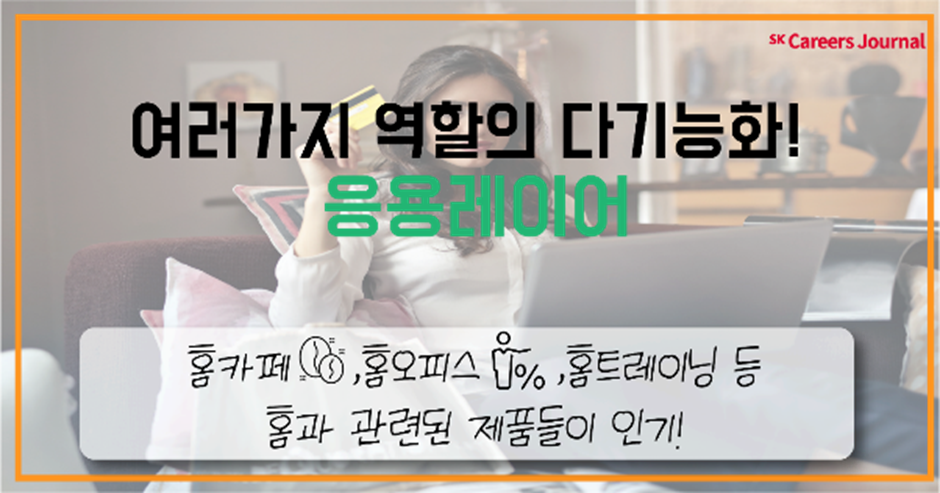 최근 홈 카페를 꾸몄다는 K 씨는 SNS에서 홈 카페 관련 게시물들을 자주 봐서 해보고 싶다는 생각을 오래 했지만 이사하면서 조용한 시간을 보내고 싶은 오후의 홈 카페의 여유로움을 즐기고자 시작하게 되었다고 말했습니다. 또, C 씨는 보다 간편하게 홈 캠핑을 즐기기 위해 나무 소재 롤 테이블과 의자, 조명만을 이용한다고 하는데요. 이를 통해 도전한 홈 캠핑은 집에서도 실제 캠핑의 70% 정도는 느낄 수 있다고 하면서 홈 캠핑을 통해 매일 있는 집에서 색다른 기분을 낼 수 있다고 만족감을 드러냈습니다. 이렇듯 응용레이어는 기존의 집의 기능을 넘어서 집 밖에서 해결했던 것들을 모두 집이라는 공간으로 끌어들이는 것입니다.