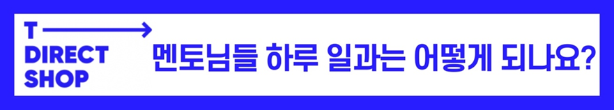 김우현 멘토님: 제 이름은 김우현입니다. 저도 T다이렉트샵에서 기획전 제작부터 홍보까지 전반적인 마케팅 업무를 진행합니다.