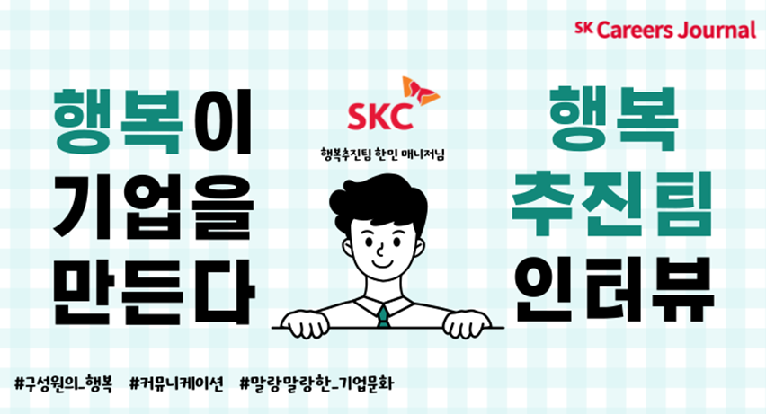 안녕하세요, SKC 행복추진팀의 한민 매니저입니다. 저는 그동안 SKC솔믹스 HR팀과 SKC 감사팀을 거쳐 21년 7월부터 행복추진팀에 합류했습니다.