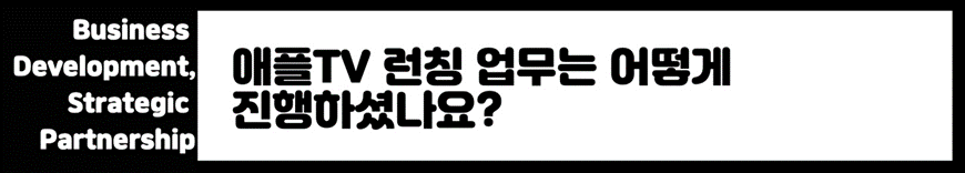 애플TV 런칭은 팀 내의 다른 동료께서 주도하신 프로젝트로, 저는 일부만 도움을 드렸던 팀 프로젝트인데요, 잘 아시다시피 국내에선 애플에 대한 수요가 아이폰을 넘어서 다양한 애플 서비스로까지 확대되어 가는 추세가 수 년간 관찰되어 왔습니다. 저희 팀에서는 이런 흐름을 시장의 지각보다 빠르게 캐치할 수 있었고, 애플과 스마트폰을 넘어선 폭넓은 제휴 기회를 고민할 수 있었기에 선제적으로 제휴를 추진할 수 있었던 것 같습니다.