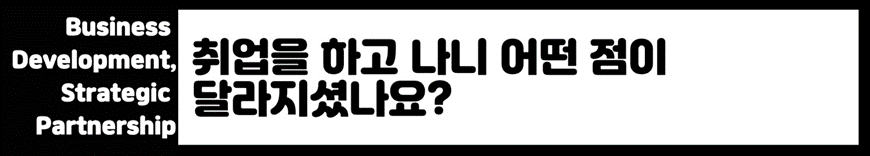 저는 회사 생활을 직접 경험하기 전에는 글로벌 커리어를 비롯해 ‘어떤 커리어 패스를 밟겠다’는 구체적인 목표가 있지는 않았습니다. 오히려 회사를 통해 다양한 업무를 직간접적으로 경험하면서 제가 기여하고 싶고, 개발하고 싶은 직무를 찾은 것 같아요. 저는 파트너십이란 직무는 인공지능과 같은 일 하는 방식의 혁신에 의해 대체되기 어렵고, 국내외를 막론하고 인력에 대한 수요가 꾸준히 있는 분야이면서, 제 강점을 살려 역량을 키울 수 있는 부분이라고 판단했습니다. 물론, 개인적으로 글로벌 테크 트렌드에 많은 관심이 있었기 때문에 더욱 잘 맞는 영역이기도 했고요.