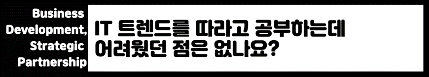 제가 하는 업무는 아주 참신한 아이디어를 만드는 창의력보다는, 다각적인 분석력과 인사이트가 중요한 영역이라는 생각이 들어요. 글로벌 직무와 관련하여 취업을 하고 싶다면 글로벌 혁신 기업들의 상품과 기술에 대한 관심과 탐구는 당연한 부분이고, 실제로 그들이 어떻게 전략적으로 판단하며 성장해 가는지에 대해 파악하려는 연습을 해보면 도움이 많이 될 것 같아요.
