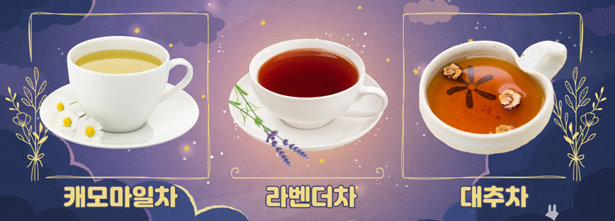 오늘은 숙면을 도와주는 차와 스트레칭, 그리고 음악에 대해 알아보았는데요. 충분한 수면을 취하지 못하면 바쁜 일상으로 누적된 스트레스가 풀리지 않고 건강에도 영향을 미치니, 여러분들을 위한 꿀팁을 꼭 기억해주세요! 잠의 대체자로서 의존하는 카페인 함유 음료는 일시적인 효과에 그칠 뿐입니다. 결국 잠의 대체는 오직 잠으로 해결 가능한 것이죠! 그렇기에 늦은 시간까지 밤을 지새우더라도 ‘숙면’을 위한 환경을 조절하며, 우리 모두 꿀잠 잡시다!🌛