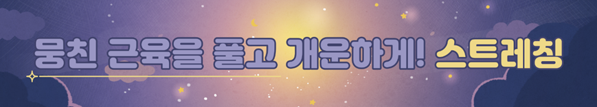 잠자기 전에 스트레칭과 같이 가벼운 운동은 하루동안 뭉친 근육을 풀어주고 긴장을 해소시켜주는 역할을 합니다. 또한 피로를 해소하는 데 도움을 주기 때문에 간단한 스트레칭을 통해 더 ‘꿀잠’을 잘 수 있답니다!