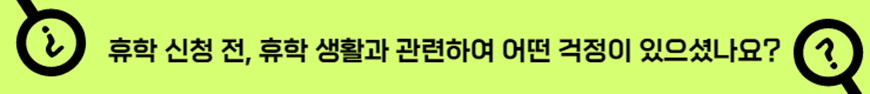 아무래도 충동적으로 정한 휴학이니만큼 제가 휴학 기간 내에 원하는 것을 달성할 수 있을지에 대한 걱정이 컸었고요. 진로를 정하지 않고 휴학에 뛰어든 만큼 관련 적성을 잘 길러낼 수 있을지 걱정이 됐었고 다른 학생들은 학업에 뛰어들고 있는데 저는 아무것도 하지 않게 되는 거잖아요. 그런 상황 자체가 조금 걱정이 됐던 것 같아요.
