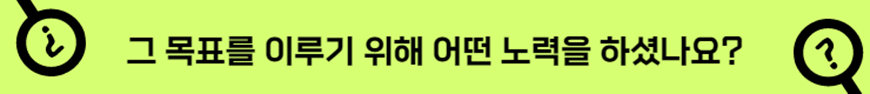 목표를 이루기 위해 매일 정해진 일상대로 공부를 열심히 하는 것은 물론이고, 체력을 기르기 위해 규칙적인 운동도 하고 있습니다.