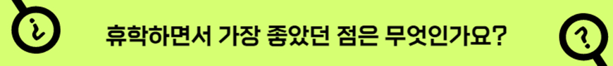 저는 시간적인 여유가 생겨서 그로부터 오는 심적인 여유가 가장 좋았습니다. 휴학 기간의 제 스케줄이 그렇게 여유 있는 편은 아니었지만 시험과 수업이 없어서 거기에서 오는 심리적 압박감은 없었거든요. 그 점이 제일 좋았던 것 같아요.
