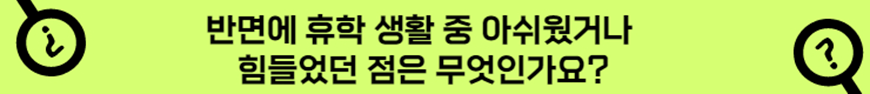 단순히 휴식을 위해 휴학한 것이 아니기에 심적으로 부담이 있었습니다. 또한, 코로나19 등의 상황으로 인해 가끔 휴식이 필요할 때 여행을 자유롭게 다니지도 못하는 것이 아쉬웠습니다.