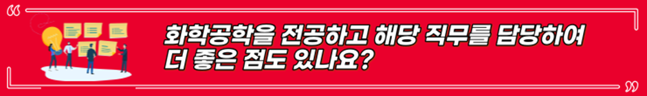 화학공학을 전공하면서 공부했던 내용을 기반으로 반도체/ 디스플레이 등 전방산업과 우리 사업에 대해 기술적으로 이해하는 데 도움이 된 것 같습니다. 기술 이해도를 바탕으로 사업을 보면 더 넓은 시야로 사업을 보고 이해할 수 있다고 생각합니다.