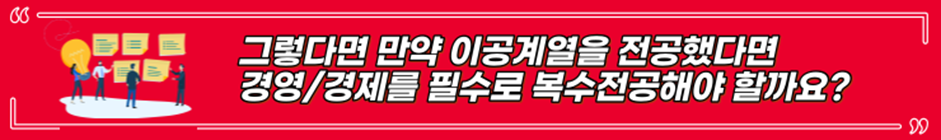 아니요, 경영/경제학을 필수로 복수전공까지 할 필요는 없을 것 같아요😊. 그렇지만 대학 학부의 교양 수업으로 경영, 경제학 수업을 들어보고 공부해보는 것은 좋을 것 같습니다. 실무적인 부분은 학부 때 수업에서 다룬 내용이 쓰이기보다는 직접 부딪히면서 배우는 것이 커서, 마음가짐이 더 중요합니다.