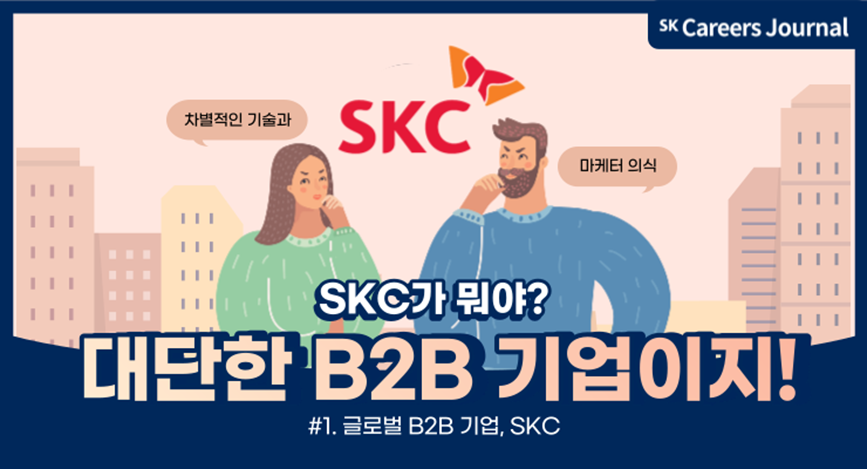 하지만 SKC가 누군가요? 글로벌 첨단소재 전문 기업으로, 전 세계는 물론이고 우리 주변에도 성큼 다가와 있답니다. 그래서 SKC가 B2B 기업으로서 가지고 있는 다양한 강점과 특징을 <SKC가 뭐야? 대단한 B2B 기업이지🔥>시리즈로 여러분께 소개하고자 합니다. 오늘 알려드릴 내용은 바로, SKC의 글로벌 B2B 사업입니다. “SKC가 뭐야?”라는 질문에는 “대단한 B2B 기업이지!”라는 답변이 바로 나올 수 있도록, 기사를 통해 흥미로운 정보를 알려드릴게요.😊