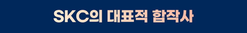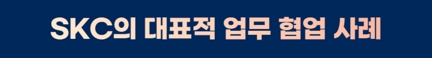 SKC는 다양한 B2B 사업을 진행하였으며, 그만큼 많은 이해관계자가 존재합니다. 이를 알아보기 위해 SKC의 대표적 업무 협업 사례와 합작사 설립 사례에 대해 소개해 드리겠습니다. 먼저, 업무 협업입니다. 이 사례들을 보시면, SKC가 우리 주변에 가까이 존재했음을 아시게 될 거예요😏