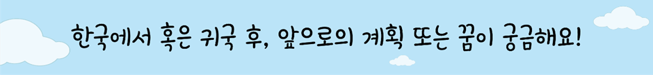 낯선 타지에서도 새로운 도전을 위해 노력하고 있는 두 명의 친구들 이야기 잘 보셨나요? 우리에게는 너무나 익숙한 것들도, 외국인 교환학생들에게는 낯설겠구나 하는 것을 느끼며 새삼 타지에서 씩씩하게 생활하는 친구들이 대단해보였는데요, 꿈을 위해 열심히 노력하는 주변의 교환학생 친구들에게 많은 응원 남겨주시기 바랍니다!