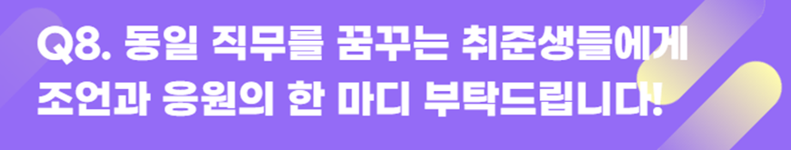 인터뷰를 진행하는 동안 컴퓨터 공학도로서 갖춘 지식을 십분 발휘해 취업에 성공하신 매니저님의 모습이 정말 대단해 보였는데요! 특히 대학 시절 기획/마케팅 활동, 실무자 컨택 동아리 운영 등 다양한 활동을 경험한 것이 현재의 직무 수행에도 도움이 되었다는 매니저님의 말이 와 닿았습니다.