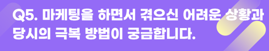 가장 어려웠다기보다, 기존에 생각했던 마케팅이 B2C에 가까운 개념이었기 때문에 제가 현재 하는 B2B 마케팅을 이해하고 실무를 수행하는 것이 쉽지만은 않았던 것 같습니다. 아직도 많이 배워 나가는 중이고요...! B2C 마케팅 대비 B2B, 그중에서도 IT 솔루션 마케팅은 리드 발굴 및 사업 기회 확보라는 확고한 목표가 있지만 이를 단기간에 이루기 어렵고, 수많은 이해 관계자들이 얽혀 있습니다. 그래서 작은 이벤트/프로모션 하나조차 기획, 운영하는 게 쉽지 않은 등 매사에 크고 작은 위기에 봉착하는 것 같습니다^^;