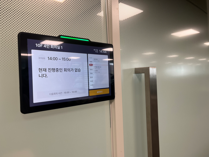 각층 사무실 입구에는 스마트 오피스 예약시스템 키오스크가 존재합니다. 이외에도 모바일 어플리케이션으로도 좌석을 예약할 수 있습니다.