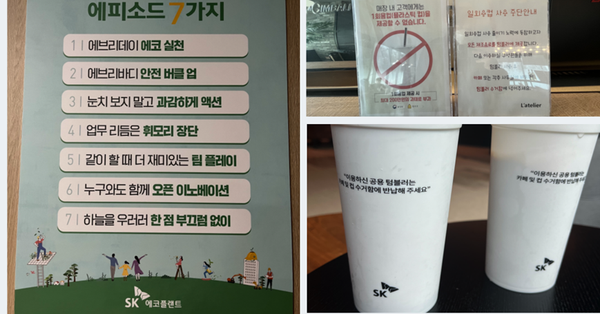 SK그룹 최태원 회장은 몇 년전부터 "근무시간의 80% 이상을 칸막이에서 혼자 일하면 새로운 시도와 사업모델 변화는 가능할 수 없다"하며 '업무 공간의 혁신'인 공유 오피스로의 전환을 강조했고 SK에코플랜트도 최근에 그 변화를 함께 했습니다.