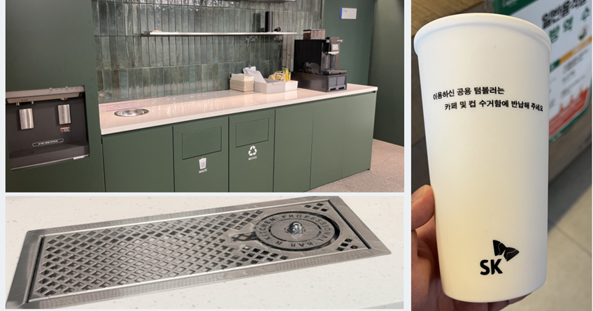 탕비실과 정수기가 있던 공간 역시 한 부서가 사용하는 곳이 아닌 공유하는 형태가 되었으며 마치 커다란 카페를 연상시킵니다. 언제든지 커피와 음료수 그리고 간식들을 무료로 먹을 수 있다고 합니다.