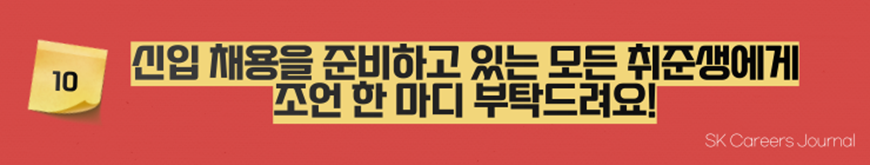 가장 먼저 주눅 들지 않는 것이 중요할 것 같아요. 내가 경험이 부족하고, 회사 경력이 없다고 해서 주눅들 필요가 없어요. 신입사원을 채용하는 회사의 입장에서도 지원자분들의 경험이 부족할 수 있다는 점을 충분히 이해하고 있습니다. 그러니 시작도 하기 전에 걱정하실 필요는 절대 없습니다.