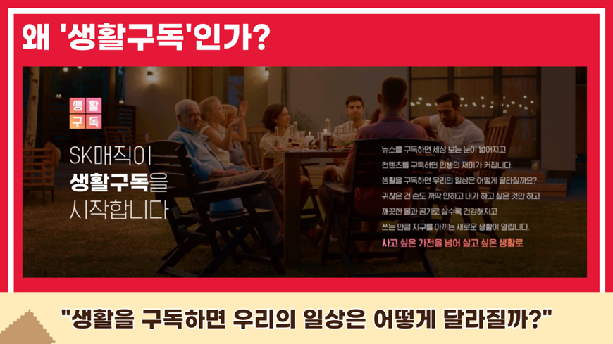 그렇다면 SK매직은 왜 이러한 ‘생활구독’ 캠페인을 진행하게 된 것일까요? 바로 이러한 질문에서 시작된 것이었습니다. “뉴스를 구독하면 세상을 보는 눈이 넓어지고, 컨텐츠를 구독하면 인생의 재미가 커지는데, 생활을 구독하면 우리의 일상은 어떻게 달라질까?”