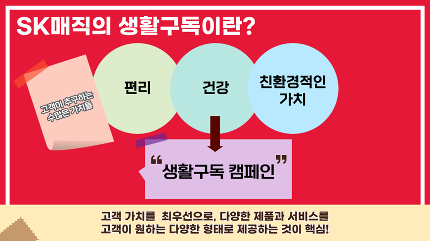 SK매직이 진행 중인 ‘생활구독’ 캠페인은 고객이 추구하는 편리, 건강, 친환경적인 가치를 보다 다양한 형태로 제공하는 것입니다. 고객 가치를 최우선으로, 다양한 제품과 서비스를 일시불 구매, 렌탈, 멤버십 등 어떠한 방식이든 고객이 원하는 다양한 형태로 제공하는 것이 생활구독의 핵심이라고 하는데요.