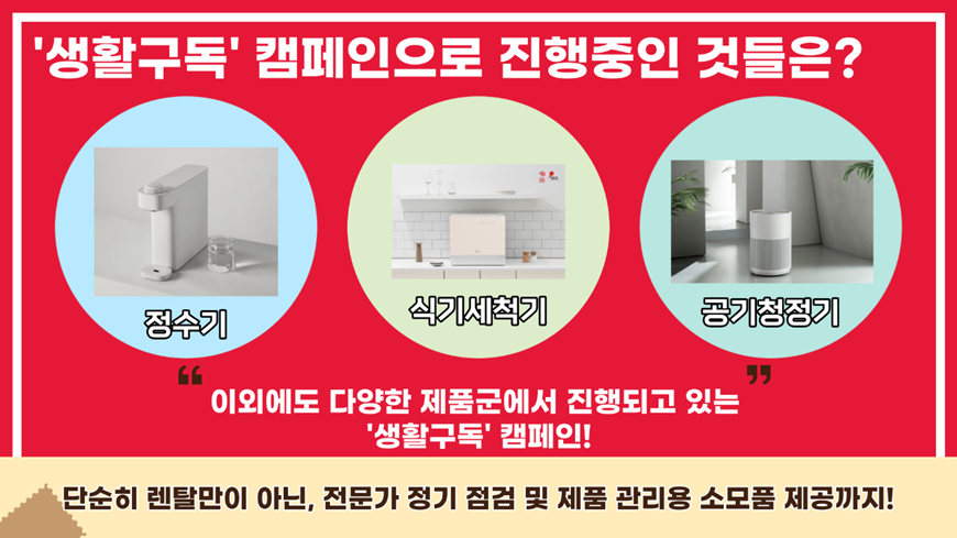 이외에도 식기세척기, 공기청정기, 비데 등 다양한 제품군에 대해서도 SK매직은 ‘생활구독’ 캠페인을 진행하고 있습니다.