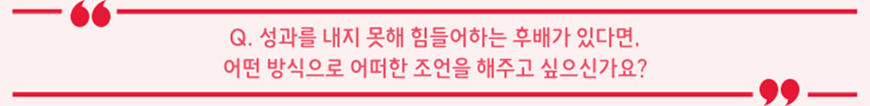 행.고.조를 만들기 위한 중점 실천요소인 따.구.과.자 중 과정과 결과를 의미하는 ‘과’에 대한 이야기를 해주고 싶습니다. 이는 일의 결과에만 집중하지 않고 과정에도 중점을 두고 수행해야 한다는 의미를 담고 있는데요, 여기서 중요한 것은 과정을 챙기는 데 있어 리더의 노력도 매우 중요하지만, 본인 스스로도 과정을 통해 성장하고 그 속에서 일의 의미를 찾을 수 있도록 노력해야 한다는 것입니다. 이를 위해 지속적으로 리더와 동료들에게 필요한 부분을 먼저 요청하고, 끊임없이 논의하며 업무에 임해야 합니다. 비록 단기간의 성과가 좋지 않더라도, 과정에서 일의 의미를 찾고 Lessons learned를 발견한다면, 장기적으로는 의미 있는 성과를 이룰 수 있을 것이라 믿습니다.