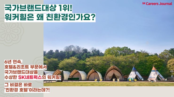 환경과 사람을 향한 진심, 그리고 그것을 직접 행동에 옮기는 워커힐의 ‘친환경 호텔’로의 열정이 6년 연속 국가브랜드대상 1위 수상이라는 영광을 만들어 준 것이 아닐까 싶습니다. 앞으로도 지구를 아끼고, 사람을 사랑하는 기업, SK네트웍스와 워커힐 호텔앤리조트에 구독자분들의 지속적인 관심과 애정을 부탁드릴게요! 더하여 꾸준히 나아가는 SK네트웍스의 ESG경영 활동에도 많은 관심 부탁드립니다.